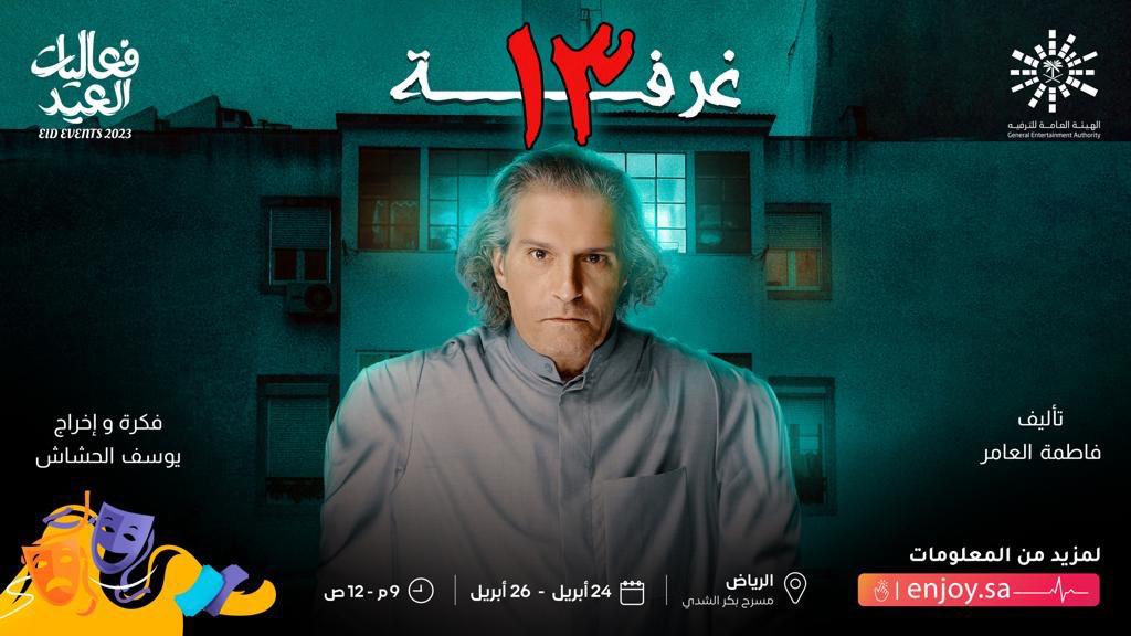Bakr Al-Shiddi Theater in Boulevard Riyadh City hosts “Room 13”, a social comedy that revolves around a man and woman who spend their honeymoon in a small hotel in Room 13 a year after the death of an elderly person with Alzheimer’s in the same room. The old man's children had placed him in the hotel room with a nurse instead of placing him in a nursing home for fear of their relatives. However, after a few days, the old man dies but his spirit inhabits the room, and events begin in a social comic framework, with the newlyweds staying in the same room.