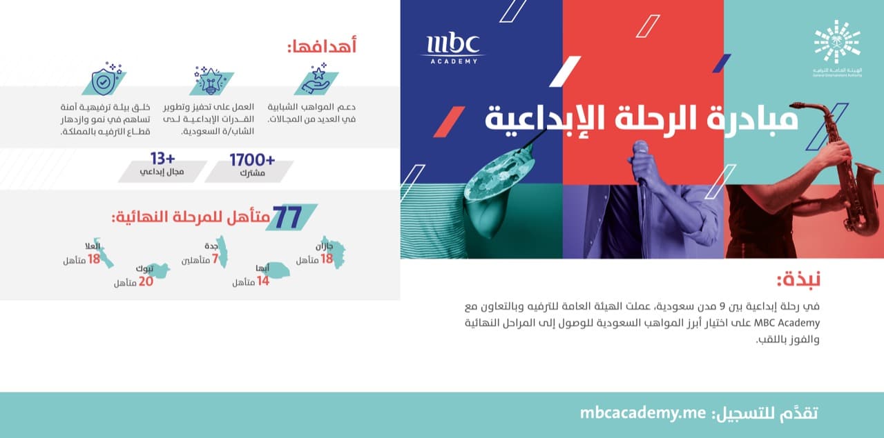 As part of its commitment to the ambitious Saudi Vision 2030, the General Entertainment Authority (GEA) pursues its talent building initiative in partnership with MBC Academy: “Creative Nation Roadshow”.