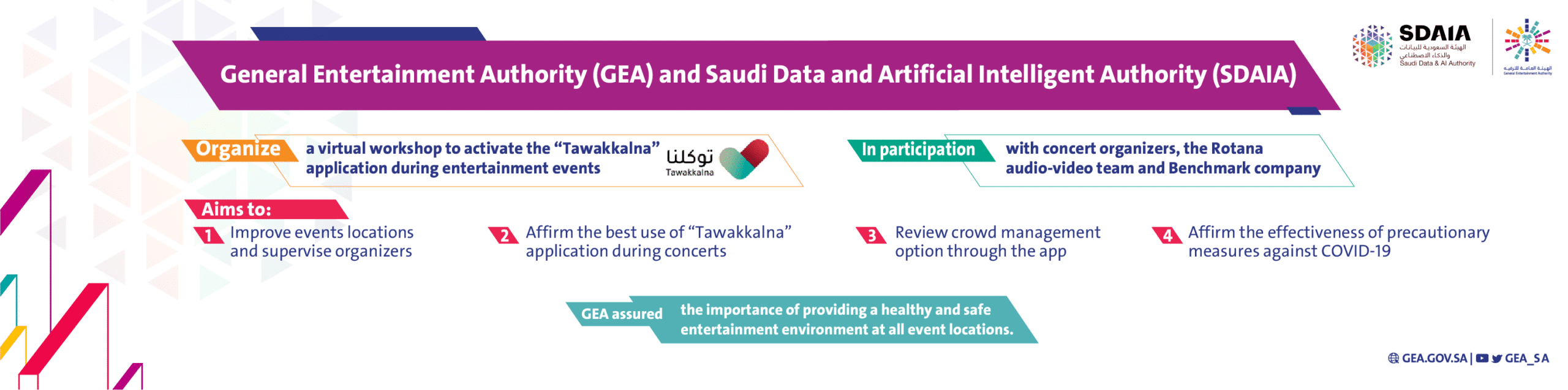 GEA and SDAIA organize virtual workshop to activate ‘Tawakkalna’ app during entertainment events