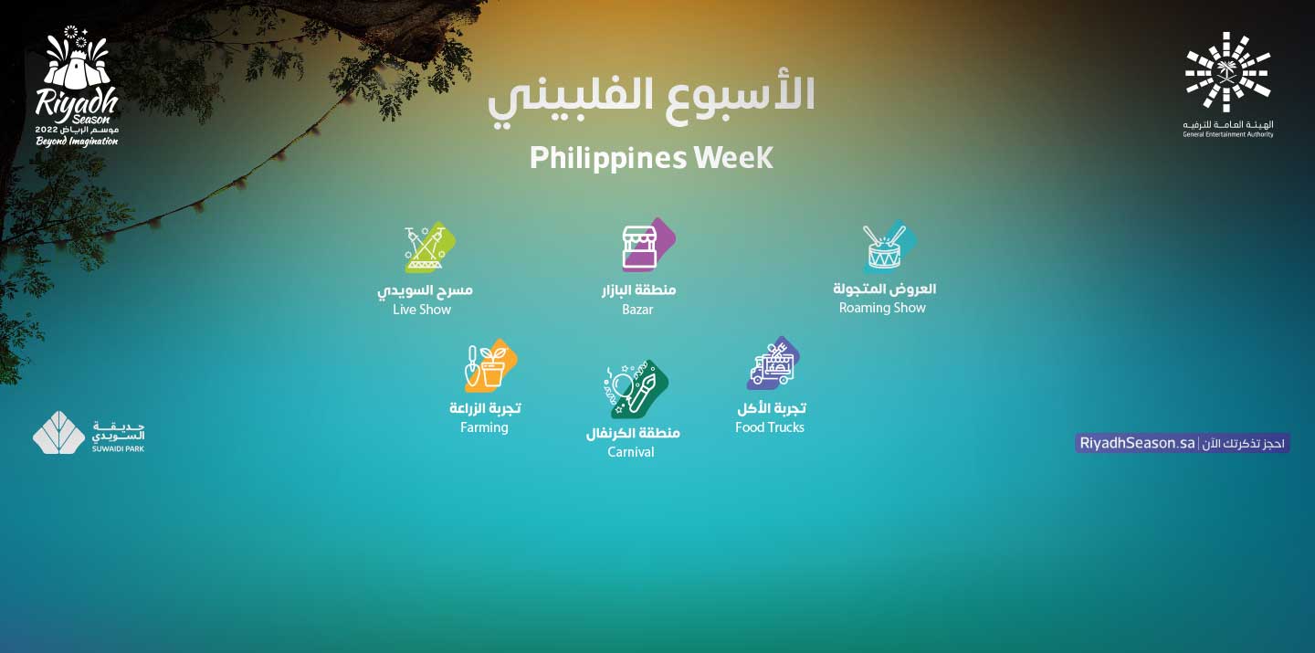 وسيكون الأسبوع الفلبيني فرصة مميزة لزوار موسم الرياض، حيث يتيح للزوار حضور فعالياته من الساعة 4:00 مساء وحتى 12:00 صباحًا، ويمكن الحجز عبر الرابط: